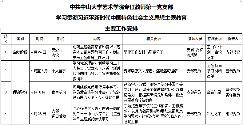 根据《中共中山大学委员会学习贯彻习近平新时代中国特色社会主义思想主题教育理论学习工作方案》等文件要求以及艺术学院党委关于主题教育的工作部署,艺术学院专任教师第一党支部牢牢把握“学思想、强党性、重实践、建新功”的总体要求,多措并举扎实推进主题教育走深走实。