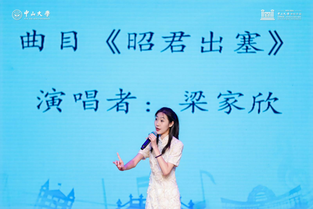 梁家欣同学演唱的一曲《昭君出塞》用传统粤剧唱腔表达了昭君为安汉而牺牲的壮志豪情,家欣同学声情并茂,情感表达细腻生动,感染了现场听众,同时也让更多人认识了粤剧这一中华优秀传统文化。
