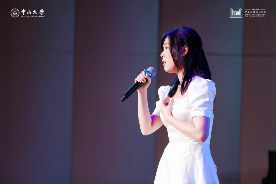 陈芷彦同学一曲《我爱你中华》诉尽对祖国的盼切,用深情的演唱和饱满的情绪表达了对祖国的真切赞美对百年中大的深沉告白。