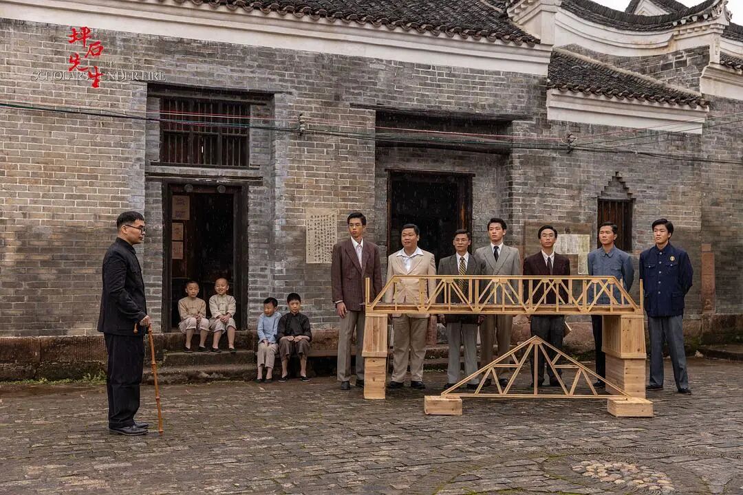 在开始拍摄之前,创作团队多次前往坪石实地勘景,综合历史事实和美学考虑,选择了祠堂二楼的阁楼作为学生宿舍,经过修缮后投入使用。甘教授还分享了在拍摄过程中利用空间本身的特性(如门头的竹制窗格)制造天然光影,为画面增添了美感和真实感。影片中最重要的场景——坪石镇的校园,由虞炳烈先生设计建造。当年时间条件都有限,虞先生就就地取材,使用竹子、泥巴、树皮等作为原料,设计、搭建了坪石校园的校舍。团队按照虞先生的设计手稿,在坪石镇的一处河滩上复原了当年的校舍。