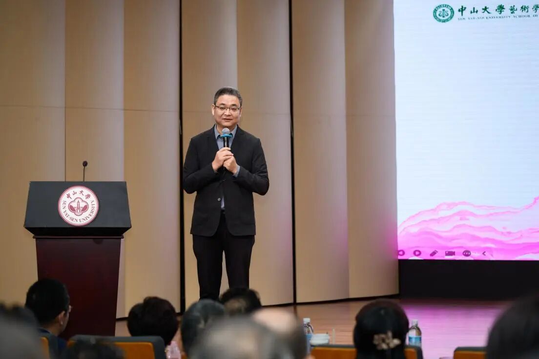 艺术学院党委张哲书记在致辞中,对艺术家许鸿飞先生、林帝浣老师及来宾表示热烈欢迎。他指出,中山大学艺术学院始终坚守“以美育人、以文化人”,通过打造原创作品,将美育融入校园文化建设。张哲书记表示,期待通过两位艺术家的分享,拓宽师生的审美视野,激发更多具有价值的文化思考与艺术实践。